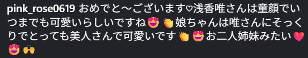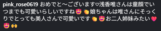 「母親にそっくり!」とか「美人でカワイイ!」とかのコメントが多いですね。