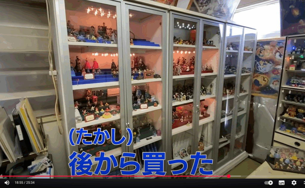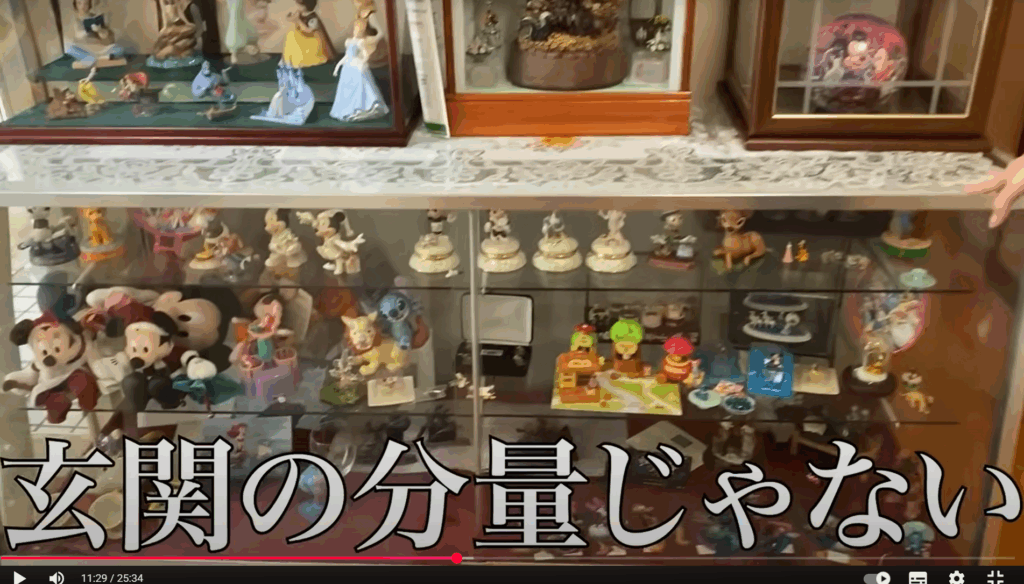 滝沢沙織さんの実家が、お父さんのディズニーコレクターで埋め尽くされている様子から始まります。